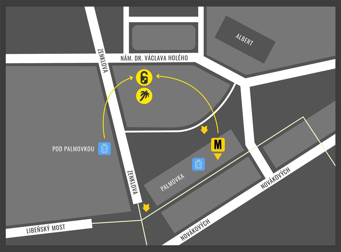 Žlutá trasa B – Zastávka Palmovka